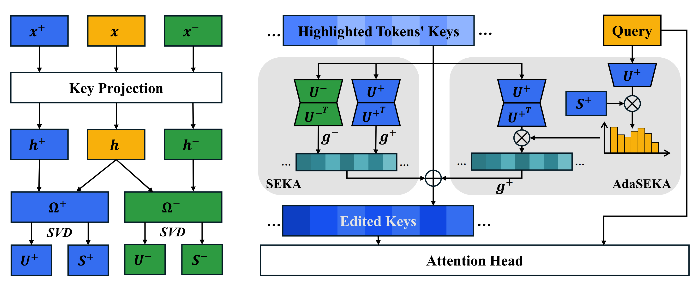 We introduce **Spectral Editing Key Amplification (SEKA)**. Instead of hacking the attention matrix, SEKA intervenes upstream. We use spectral decomposition to learn universal 'relevance subspaces' and edit the key embeddings directly before attention is computed. This makes SEKA **training-free**, **interpretable**, and **fully compatible with Flash Attention**. We further introduce AdaSEKA, a query-adaptive variant that dynamically routes prompts to expert subspaces for precision steering.