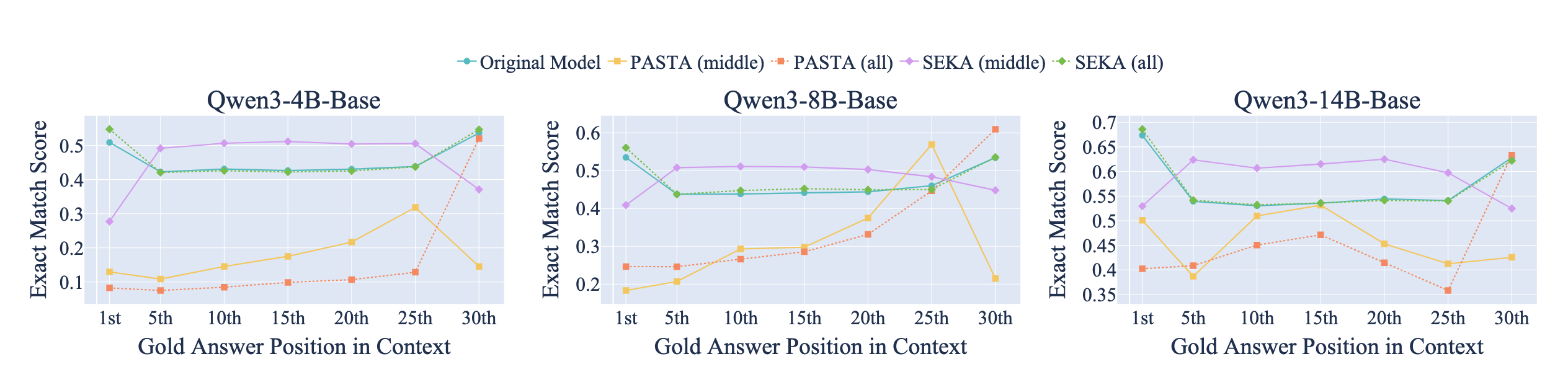 Crucially, SEKA inverts the 'Lost-in-the-Middle' phenomenon. By steering attention to the middle of long contexts, we transform the typical performance trough into a peak, enabling precise retrieval from any position.